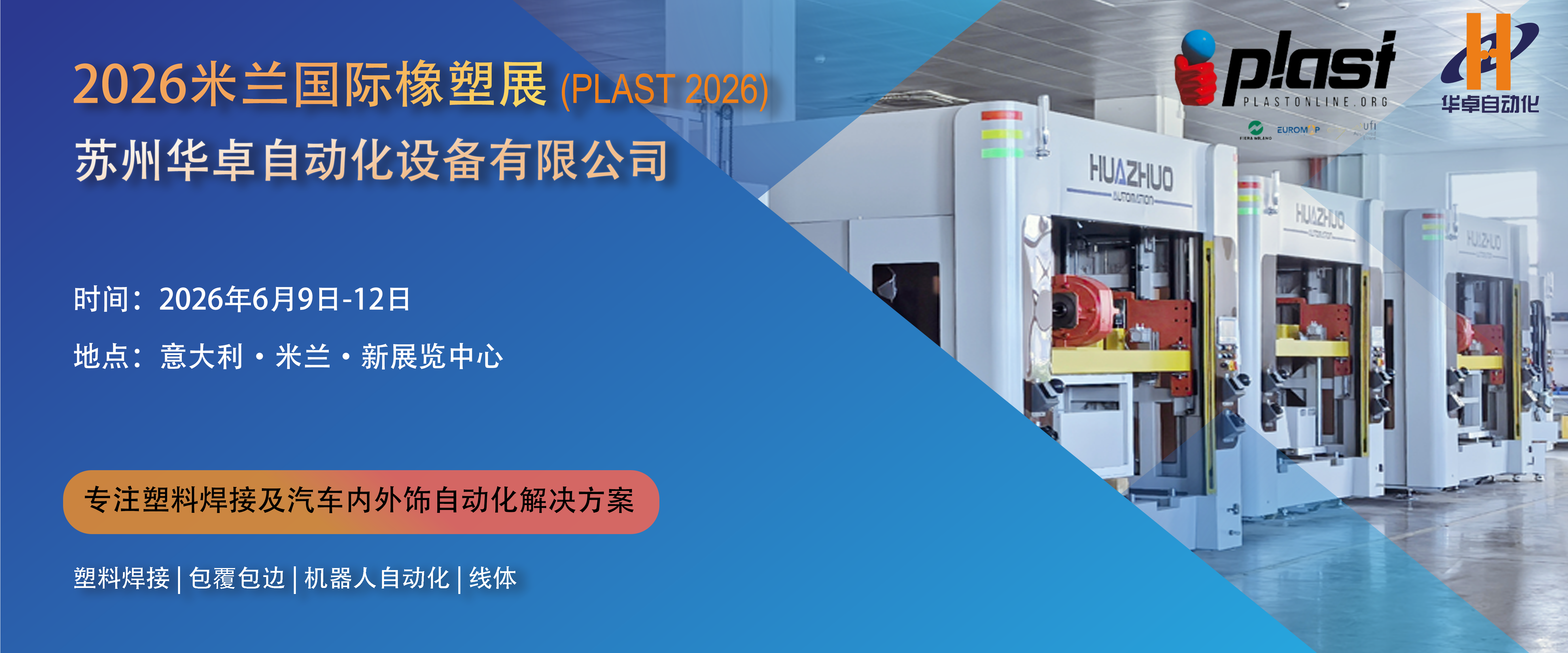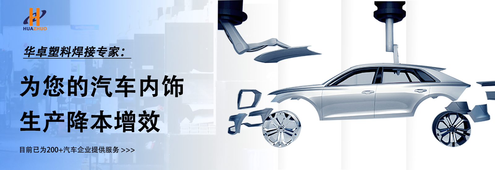 華卓集團成立于2012年,是一家領先的高科技企業,致力于塑料焊接設備和智能自動化解決方案的研發、制造和銷售。華卓總部位于江蘇省蘇州市,并在浙江省湖州市設有2000平現代化生產基地,深耕汽車內外飾塑料焊接行業超過12年。